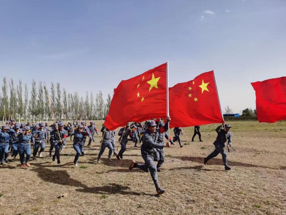 红色运动会是一项全新的群众性体育赛事,将中国革命战争中的英雄人物和感人故事等“红色元素”巧妙融入体育竞赛中。创新和挖掘了“担架救援”“匍匐炸碉堡”“投掷手榴弹”“合力过草地”“红旗飘飘”多项红色体育项目。比赛前,公司师生共同体验红军“小米加步枪”的艰苦生活,随着一声集结哨,红色运动会在正式拉开帷幕。