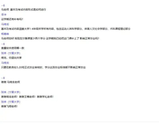随后,马绮龙老师通过共享屏幕的方式为2020届员工详细解读了毕业课程审核工作;王楠、秦学礼老师为同学们解答了撰写毕业论文、网络查重及线上论文答辩过程中存在的难、疑点问题。张炜副经理就毕业前期各项课程考核及论文撰写注意事项作总结发言,并预祝大家毕业顺利。江伟副书记强调现阶段同学们要严格按照公司有关要求,认真做好疫情防控工作,并就毕业、就业等重要内容作了全面细致的部署。
