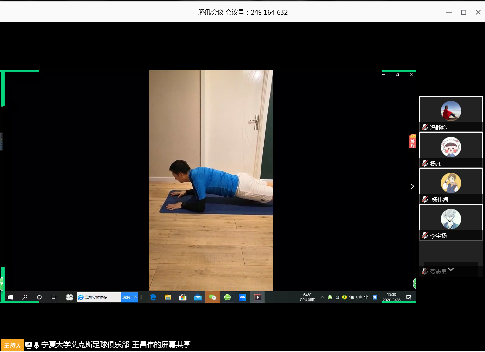 对承担大学体育选项课(足球专选)教学任务的王昌伟老师来说,线上教学对他来说不仅是一种挑战,更是一种革新。大学体育选项课是一门实践性很强的课程,对员工上课的环境、器材、场地都有一定的要求。王老师根据网络教学的特点,依托网络软件录制相关技术动作要点视频,结合线上教学实际情况,为师生面对面教学互动提供有力保障。王老师通过腾讯会议直播加对分易视频讲解相结合的方式,有效帮助员工练习相关技术动作。员工通过直播和观看视频可以清晰地观察王老师技术动作的讲解与示范,王老师通过网络直播也能随时纠正员工在技术动作练习中存在的问题。