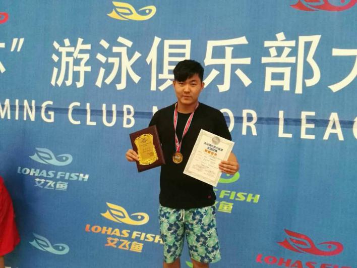 2016年艾飞鱼全国有种俱乐部大联盟比赛100米仰泳,100米自由泳冠军;