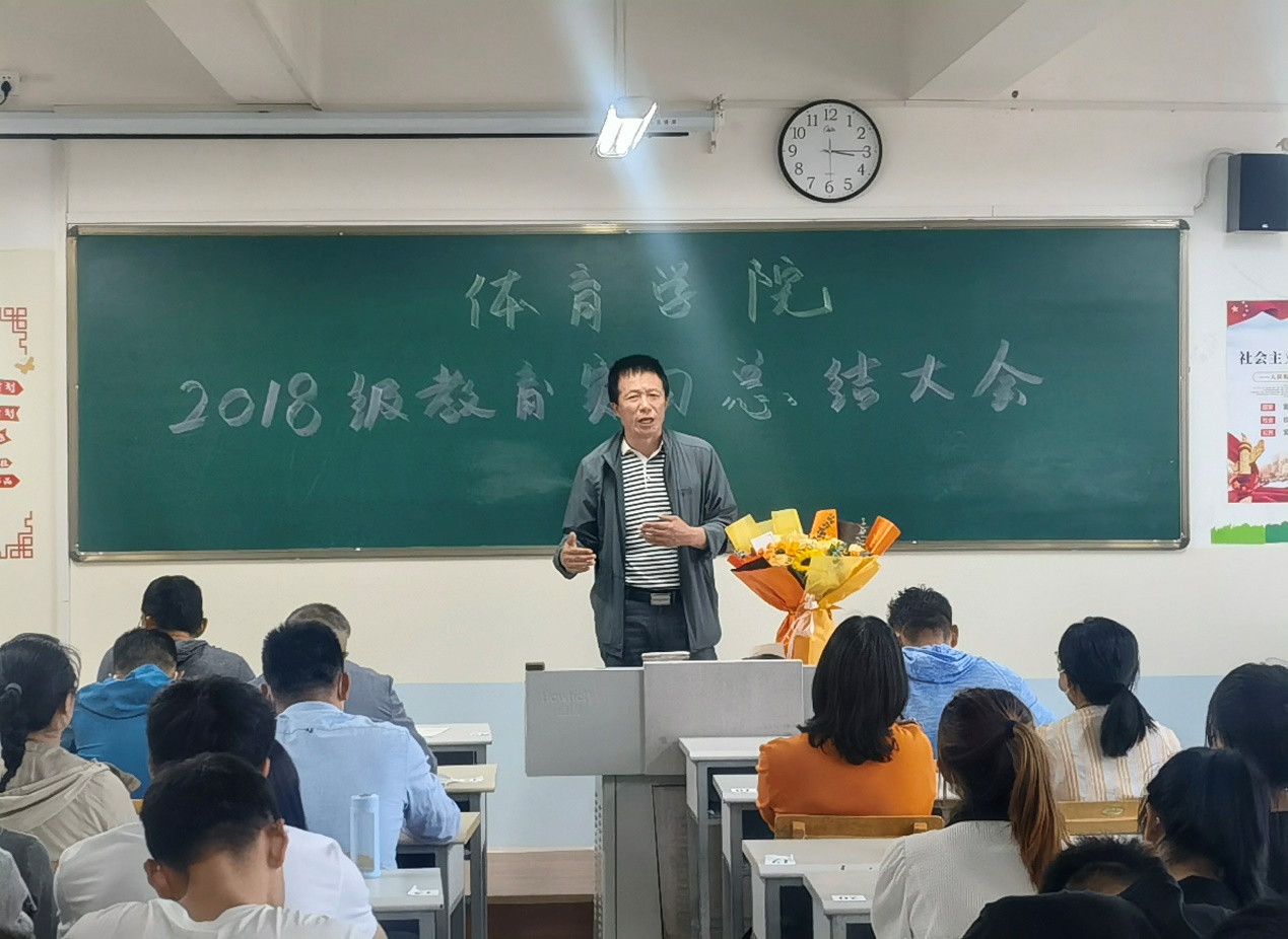 会上,古副经理对2018级体育教育专业员工圆满完成本次实习任务表示祝贺,并结合师范专业认证工作提出了指导性意见。她强调,希望同学们学会在总结中凝练精华,同时合理规划职业生涯,为以后进入职场奠定坚实基础。