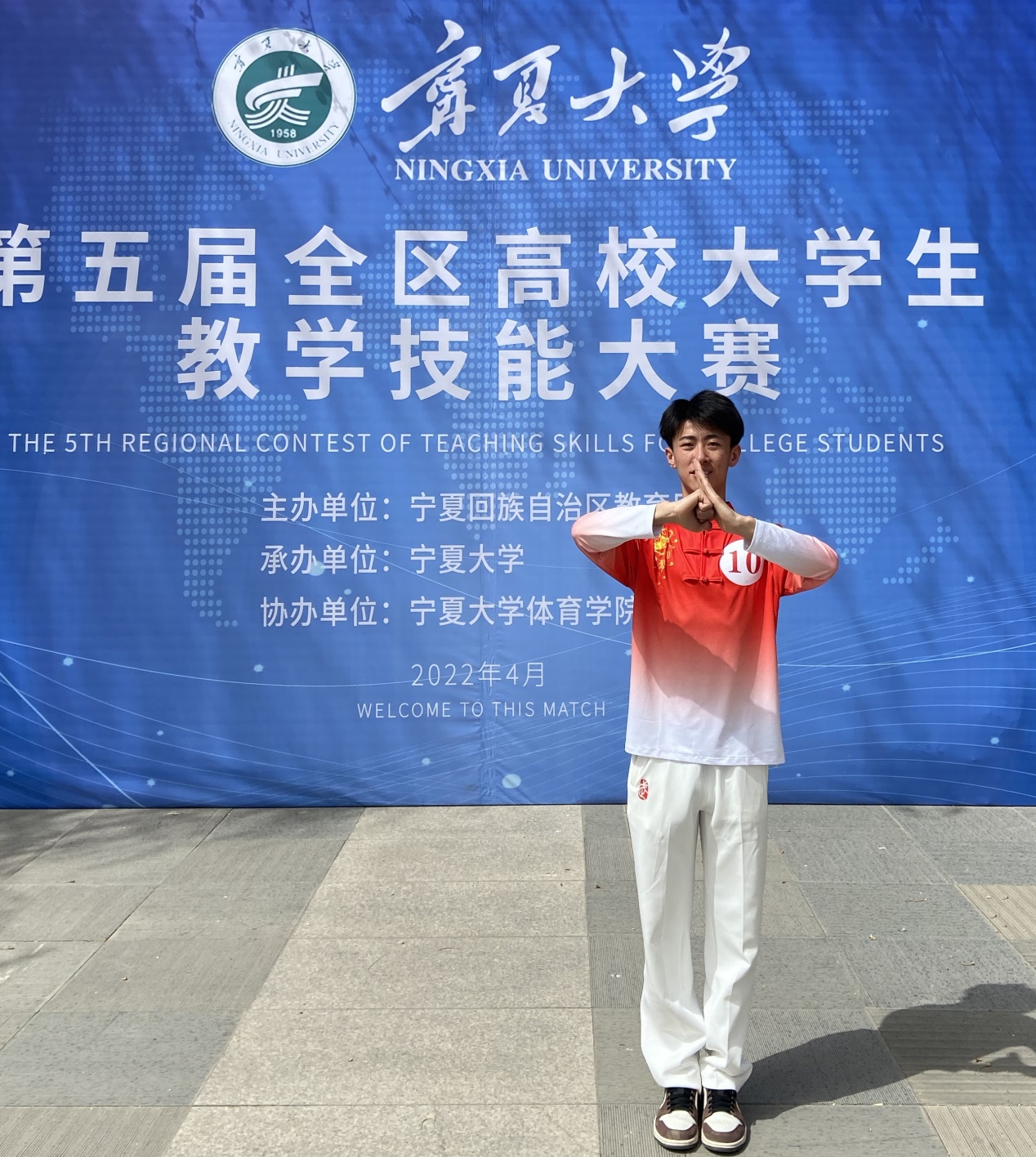 公丕帅同学在各位老师的精心指导下,全身心投入,认真备赛,发扬“自强不息 奋勇争先”的求是精神,在比赛前后充分备战、积极应战、迎接挑战,最终取得了艺体组第一名的优异成绩。希望同学们能够向公丕帅同学学习,持续提升教学技能水平,在今后的竞赛中再创佳绩。