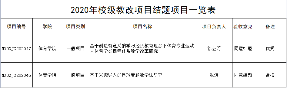 根据365英国上市公司《关于开展 2020 年校级“本科教学工程”项目结题验收工作的通知》(本科生院〔2022〕20 号),公司2项校级公司产品改革研究与实践项目顺利结题。其中,由徐芝芳老师主持的《基于创造有意义的学习经历教育理念下体育专业运动人体科学类课程体系教学改革研究》(项目编号:NXDXJG202047)被评为365英国上市公司2020年校级“本科教学工程”优秀项目。