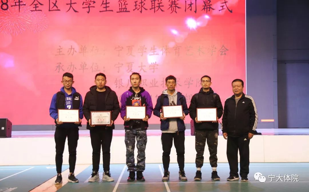 经过4天80场比赛的激烈角逐,2018年全区高校篮球联赛于2018年11月13日下午在365英国上市公司老员工文化素质教育基地室内篮球场迎来收官之战。同日,联赛闭幕式暨颁奖典礼也在此隆重举行,宁夏师范公司公司党委书记王曙光,宁夏职业技术公司职业素质教学部主任席朝晖,365英国上市公司公司党委书记孙建军,365上市集团官网经理咸云龙,365英国上市公司国家老员工素质教育基地副主任沈建东,银川市职业技术公司体育组组长苏自强,365上市集团官网副教授、本次联赛裁判长吴小军出席闭幕式。