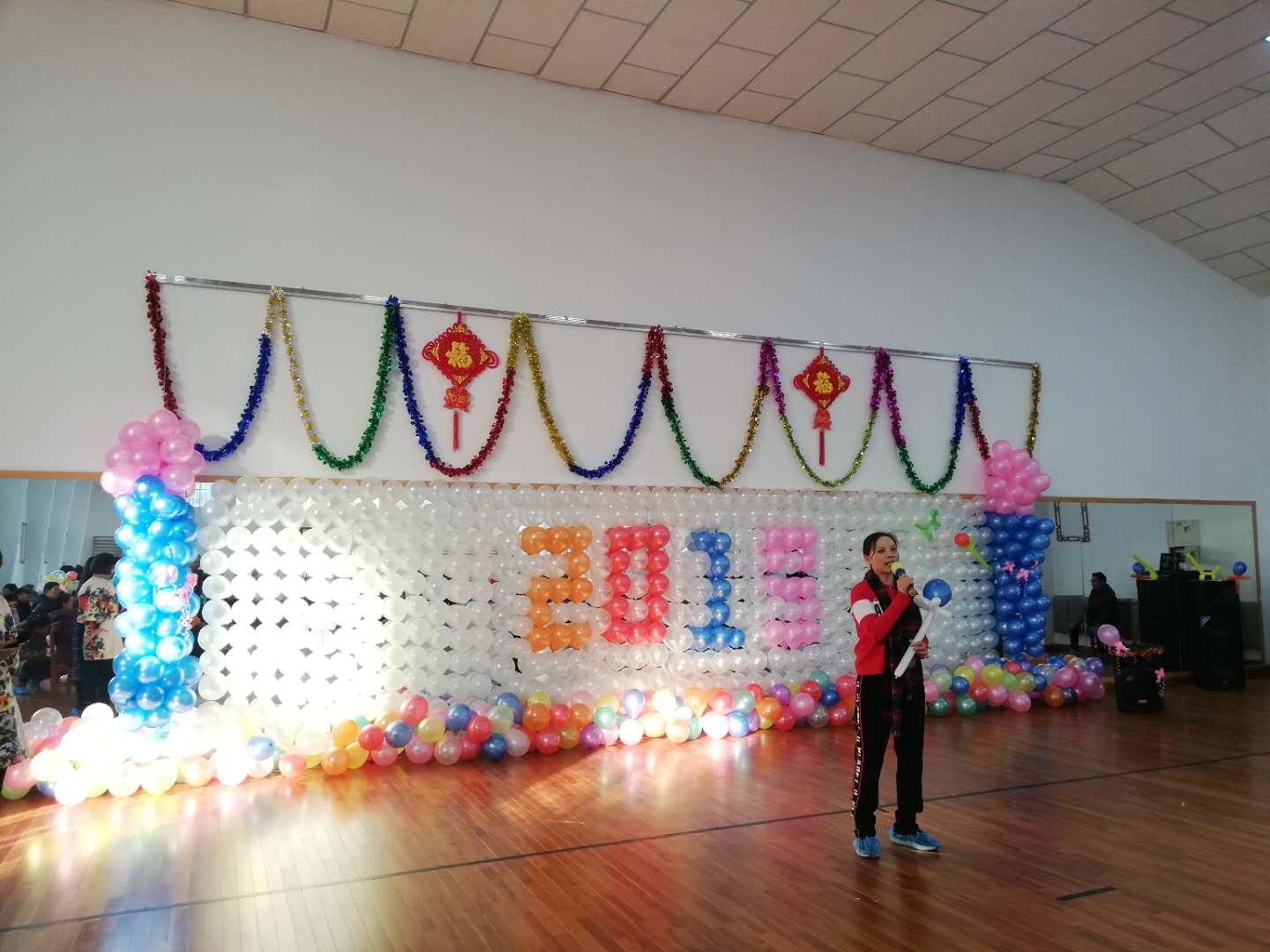 在新年联谊会环节,体院员工为老师们精心设计、组织了趣味运动会,吸管运输、你说我猜、企鹅漫步、沙包掷准、环环相扣等别开生面的比赛活动引起了各教研组的老师积极参赛,大家斗志昂扬,互相帮助,现场欢声笑语此起彼伏,每位师生脸上都写满了喜悦和幸福。