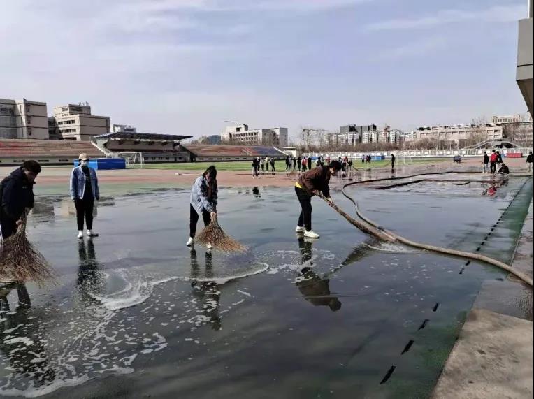 3月6日,公司组织50名员工对怀远校区田径场和文萃校区部分运动场地进行清扫,确保在公司正式开学前为全校师生营造良好的运动场地(馆)环境,以崭新的精神面貌迎接新学期的开始。