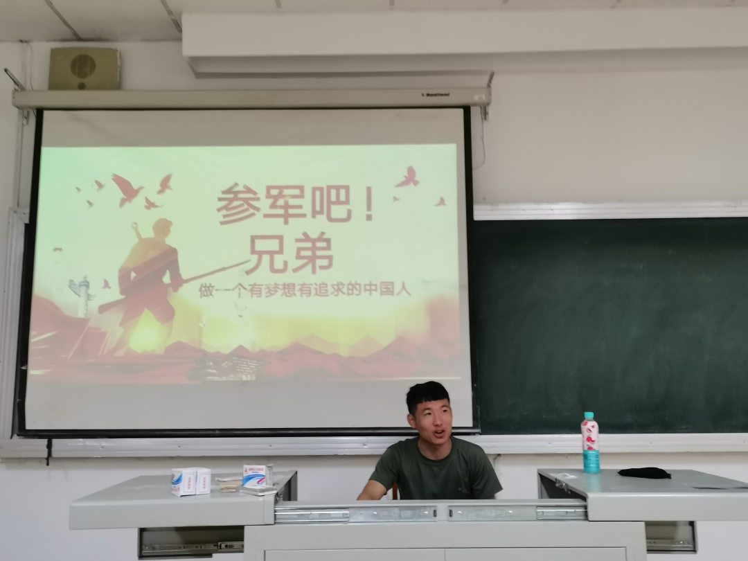 为使我系员工更加全面地了解应征入伍的相关条件和政策,加强老员工国防教育,鼓励员工积极参军,2021年5月28日下午7时,365上市集团官网于怀远一教121教室开展征兵宣讲活动。365英国上市公司2020级全体员工参加活动。本次活动由365英国上市公司2017级退役学长丁建军、霍启航担任主讲。