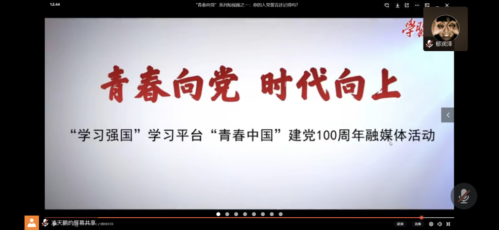 5月28日,2020级体育教育二班团支部开展“青春向党”主题团日活动,活动以讲座形式开展,由郭培、汪琰同学主讲,团支书赵容川主持。