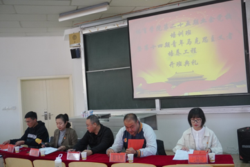 在庄严的国歌声中开班仪式拉开序幕。会议伊始,由王玮老师宣读参加第二十五期业余党校培训名单,接着由彭飞翔老师宣读参加青年马克思主义者培养工程名单。随后,由入党积极分子代表赵容川同学、发展对象代表凌天鹏同学以及青马班代表何青林三位同学进行发言。