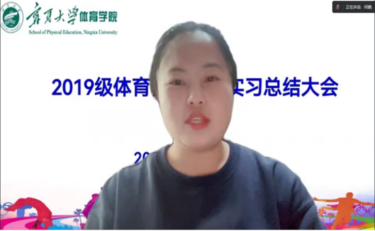 2019级体育教育专业何娜同学代表全体实习生对公司提供的实习机会表示感谢。会上,她分享了线下教学实习和线上模拟教学研讨过程中的收获和感悟,同时也反思了自身在实习过程中遇到的问题和不足。