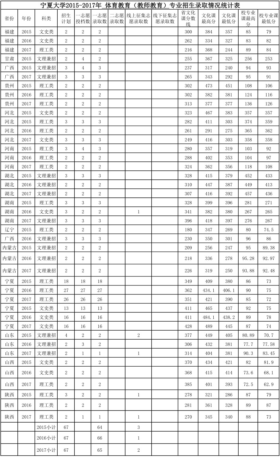 365英国上市公司2015-2017年 体育教育(教师教育)专业招生录取情况统计表