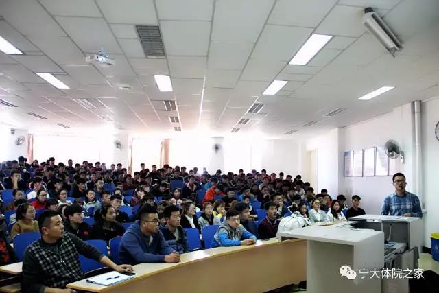 首先,常喜向在座的同学们讲述了里约奥运会期间,他和他的团队如何为各类运动员提供体能方面的科学保障,让大家了解到奥运会一枚奖牌的“台前幕后”。然后,在“身体功能训练的基本内容”的讲解中,他通过对“诊断及治疗”,“动作准备”,“专项运动训练”等方面的讲解让同学们更加深入了解体能训练师的基本工作。最后,他分享了自己作为科研公关组组长在著名运动员陈盆滨的“百天百个马拉松”项目中担任体能训练师的工作经历。