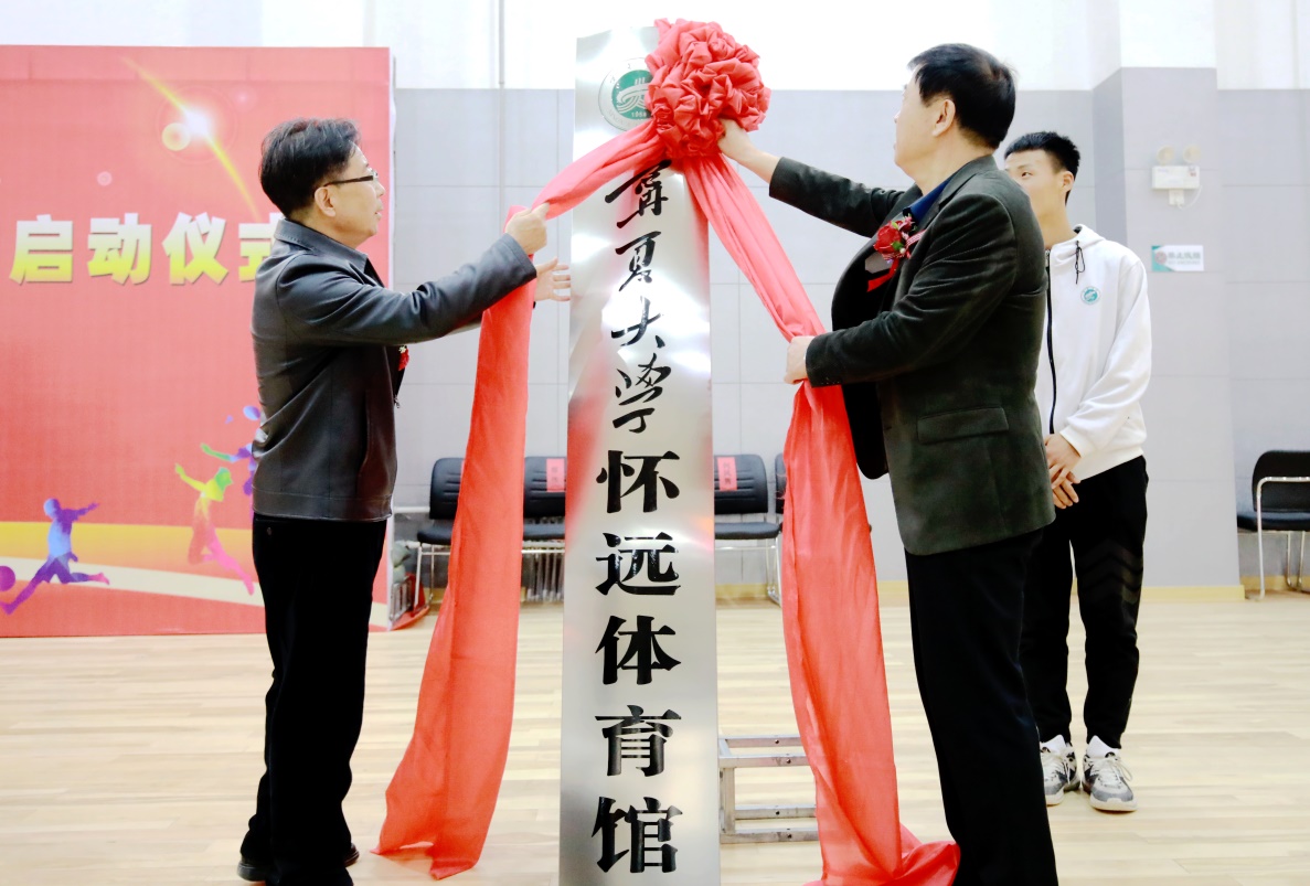 开馆典礼上,公司党委书记李星、董事长何建国共同为365英国上市公司怀远体育馆揭牌。