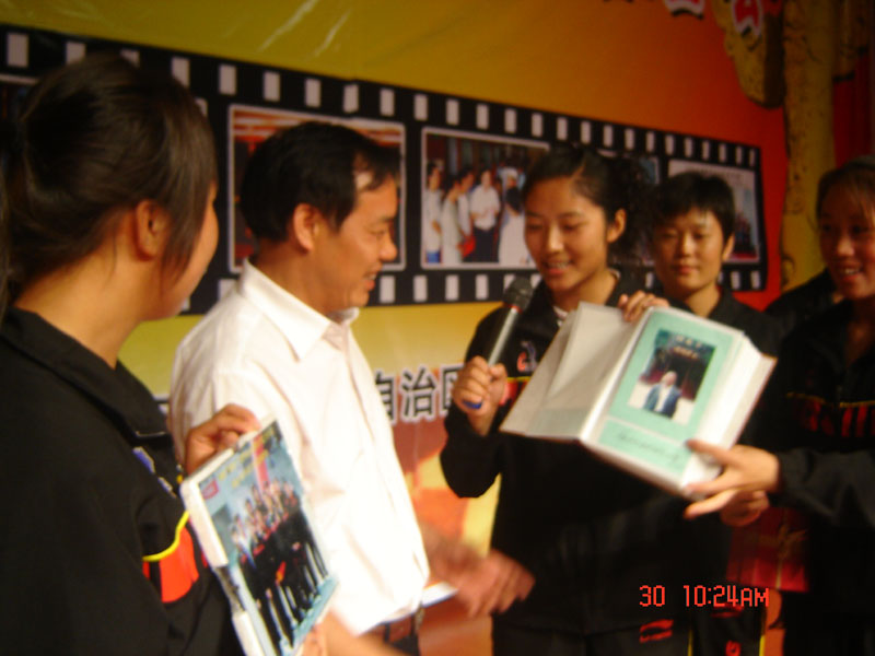 报告会结束后,宁夏电视台的记者采访了我们女篮队员张欣和李莉。当记者问到“请你们谈谈对本次活动的感受”时,李莉激动的说:“每个人都有自己的人生观和价值观,而每个人实现自己人生观和价值观的方式又不同,有的人用享乐,有的人用孝心,而陈老师用爱心实现了他的人生观和价值观,他是最高尚、最富有爱心的人,我们相信,只要爱心永存,世界就会和谐。”