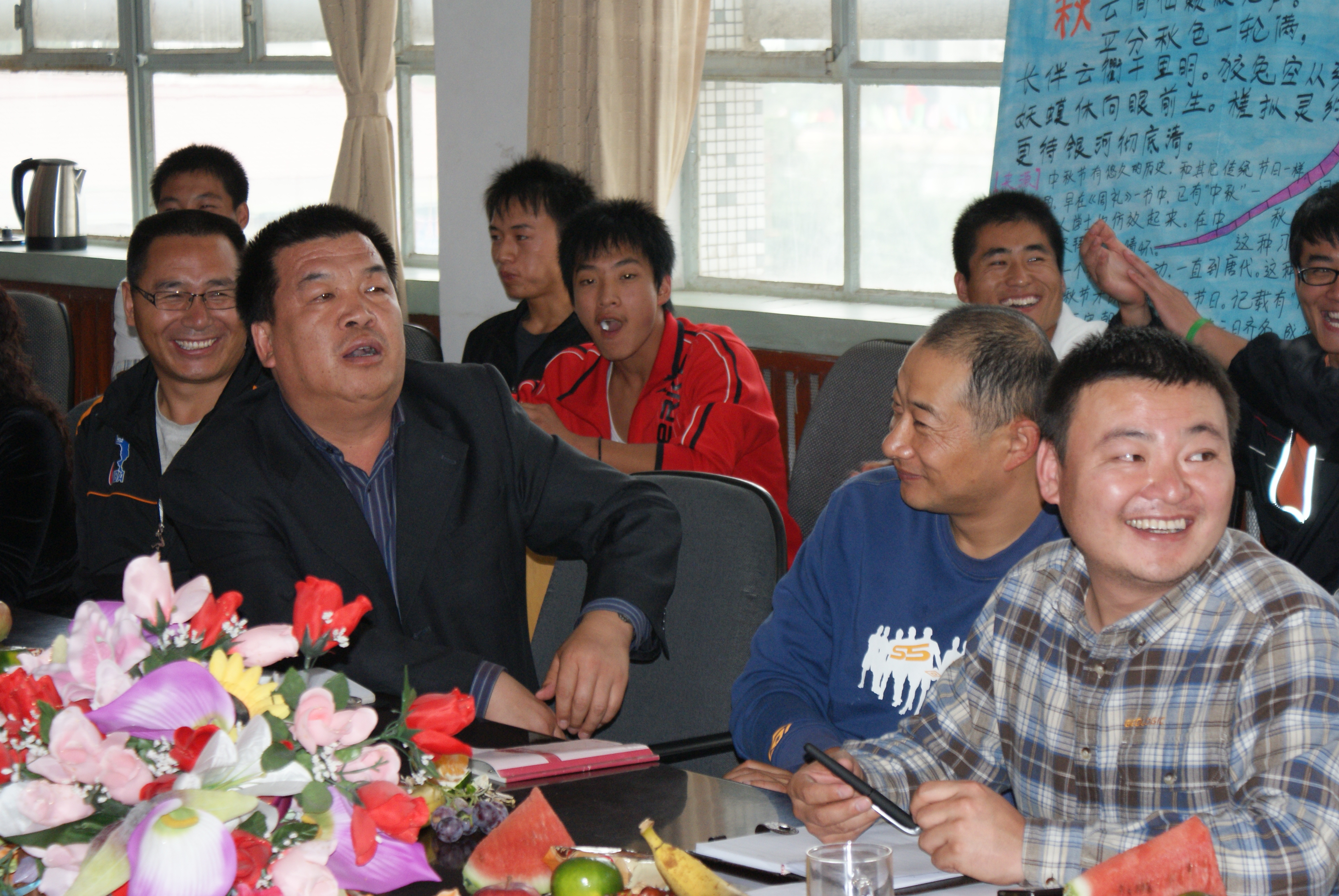 【文/刘绍亮摄影/李林涛】正值中秋佳节及国庆到来之际,为加强与外地员工的联系与沟通,为他们送去公司的关怀,使2010级新生快乐、安心的度过第一个出门在外的中秋、国庆节。365英国上市公司于9月21日在公司会议室举行迎国庆 庆中秋座谈会话会。公司党总支书记戴兴安老师,副书记赵奋军老师,副经理咸云龙老师,行政办公室主任谢琴老师,教学办公室主任孔德银老师,以及辅导员江伟老师,与来自来自广西、河南、山东等十余个省市的50名2010级新生欢聚一堂,共度节日,茶话会由员工办公室主任张龙老师主持。