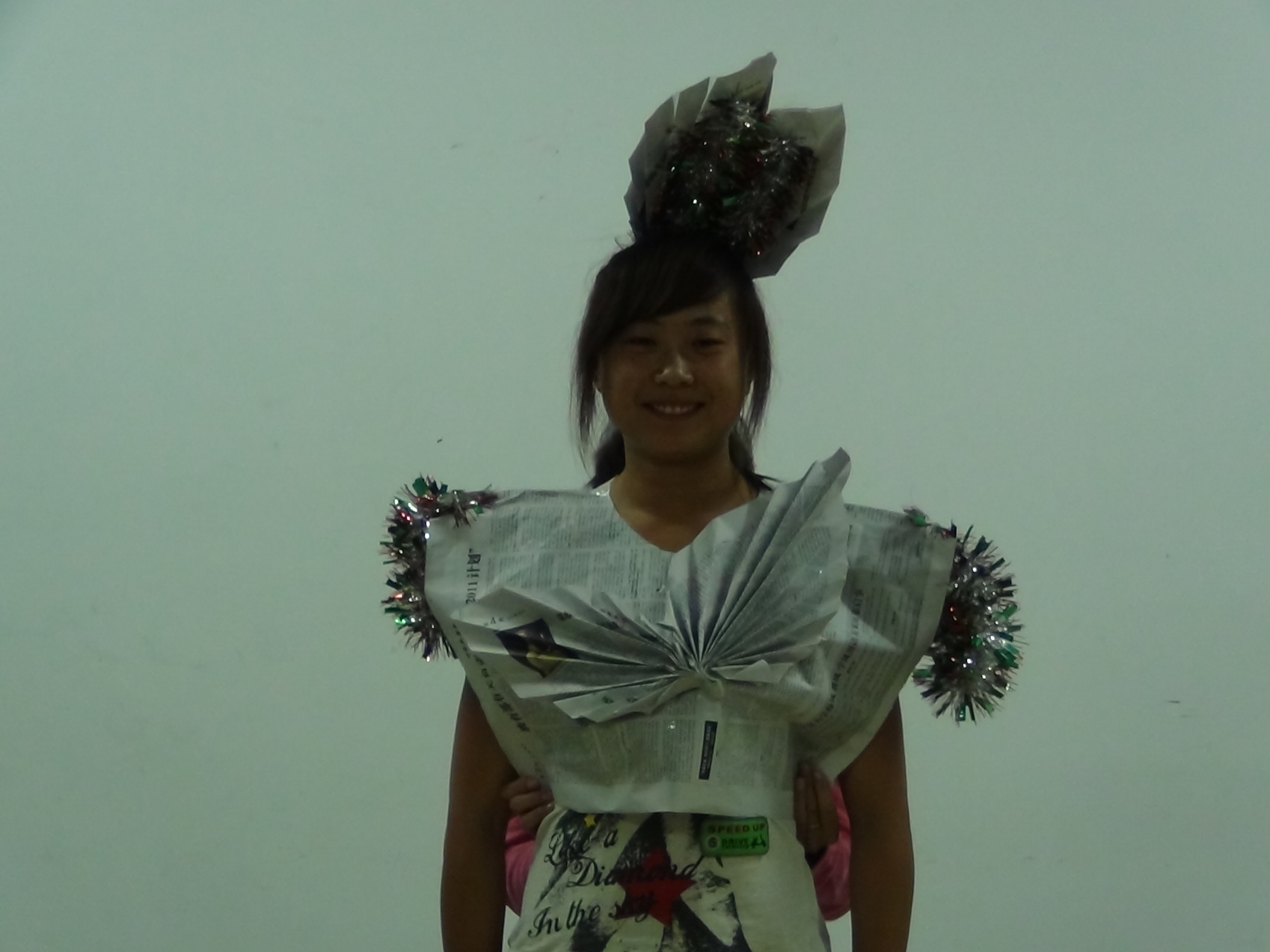 在主持人精彩的开场之后,参赛队员便开始了作品展示。此次活动有二十余件作品参加比赛。有塑料瓶做的“迷你羽毛球”、羽毛球筒做的“按摩板凳”、报纸做的“披风”等,同学们充分发挥自己的想象力,将旧物重新进行改造,使其发挥新的用途,充分体现了本次活动的主题——旧物品,新作用。
