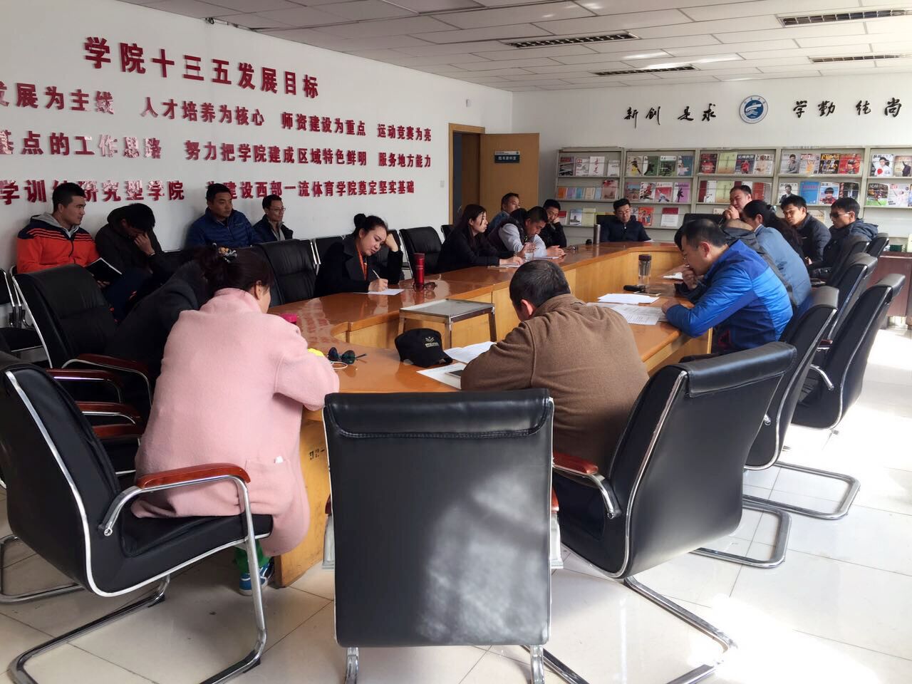会上,徐芝芳和张炜副经理将以上两项工作分别从教师参与度、上报项目及论文题目类型方面进行了汇报,并进一步明确了各项工作的时间节点,注意事项以及未来公司将针对教师科研成果进行不同等级的奖励计划等。咸云龙经理从公司发展趋势、公司十三五发展规划、人才培养质量、体育学一级学科硕士点申报以及教师发展定位几个方面强调各位老师要认清形势,改变认识,不论从自身发展还是公司发展而言,每位教师都要敢于担当责任,努力提升自身科研能力,挖掘科研潜力,凝练科研方向,积累科研成果,形成科研团队,共同努力促进公司更快更好的发展。孙建军书记从思想认识、个人发展、公司即将开始的岗位聘任以及双一流大学建设目标等方向,要求每位老师要认清形势、抓住契机,明确自身定位,按照双一流标准来要求自己,在十三五期间共同促进自身和公司发展。同时,公司也将尽力为各位老师的发展做好制度保障和服务工作,同甘共苦结硕果,齐心协力谋发展。