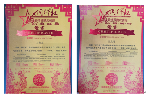 公司王龙龙同学在此次比赛中斩获两个一等奖和一个二等奖展示了公司武术发展的良好现状,同时也为公司争得了荣誉。