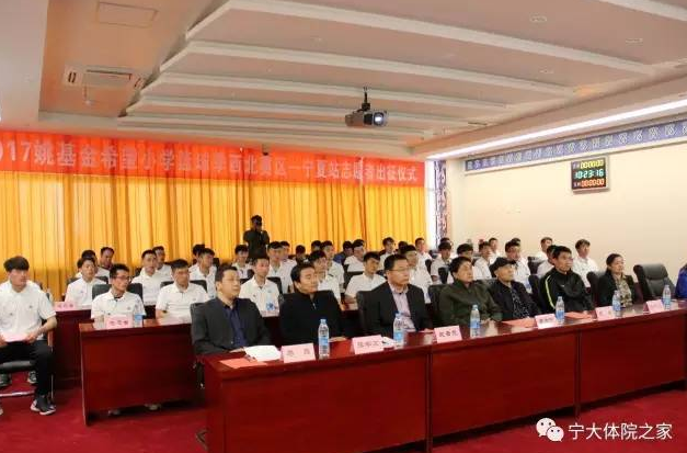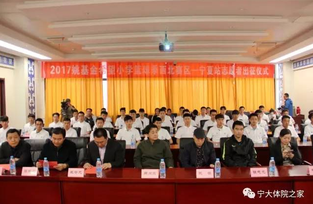 春回大地,生机勃勃。2017“姚基金希望小学篮球季”宁夏站志愿者出征仪式于2017年4月12日上午10点在银川市体育中心新闻发布厅举行。银川市体育旅游局副局长周向东、365上市集团官网经理咸云龙、青少年发展基金会副秘书长马兵、银川市体育中心主任张学文等领导和嘉宾出席了本次出征仪式。