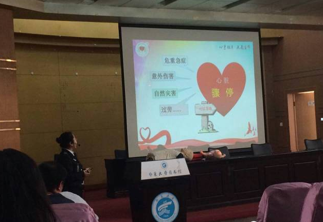 本次讲座主要包括发生紧急情况时的心肺复苏方法和亲身演示救护活动。讲座过程中,老师讲的生动活泼,贴近现实生活,把生活中可能碰到的紧急情况一一分析,并为同学们在假人身上演习了心肺复苏的过程。