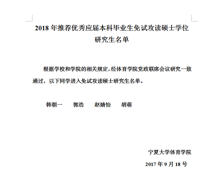 2018年推荐优秀应届本科毕业生免试攻读硕士学位研究生名单-365上市集团官网