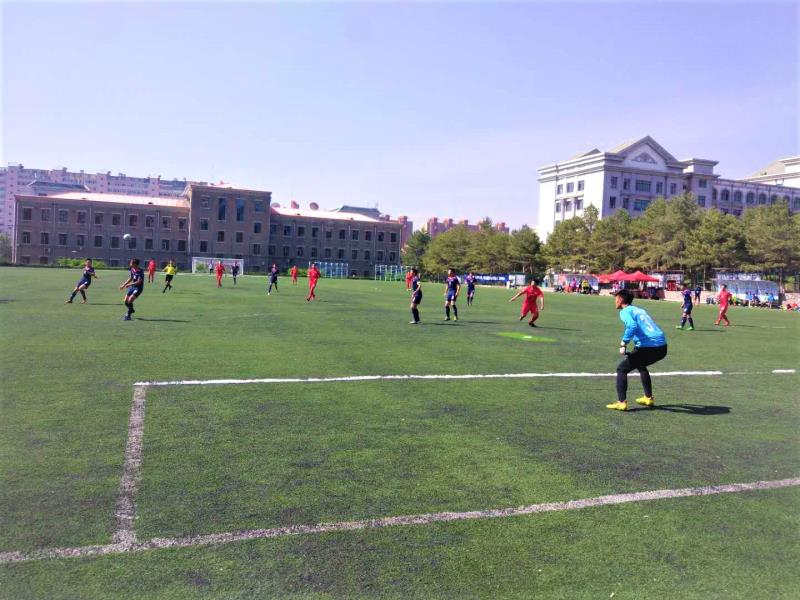 5月17日14时,公司对战传统强队——2016、2017大足联赛超级组第二名北京理工大学。面对这样一支比赛经验、技术水平、战术配合都十分老练的实力型球队,公司男足自信出战,奔跑防守。主教练对上场人员进行灵活调整,积极与对方展开对攻,并在一段时间内占领场上主导权。比赛第85分钟,公司在前场打出精妙配合,7号史庆山突入禁区倒三角传中,19号王昊打门,我方队员在门柱附近躲闪不及,与进球失之交臂。虽然最终宁大男足以大比分0:6输掉比赛。