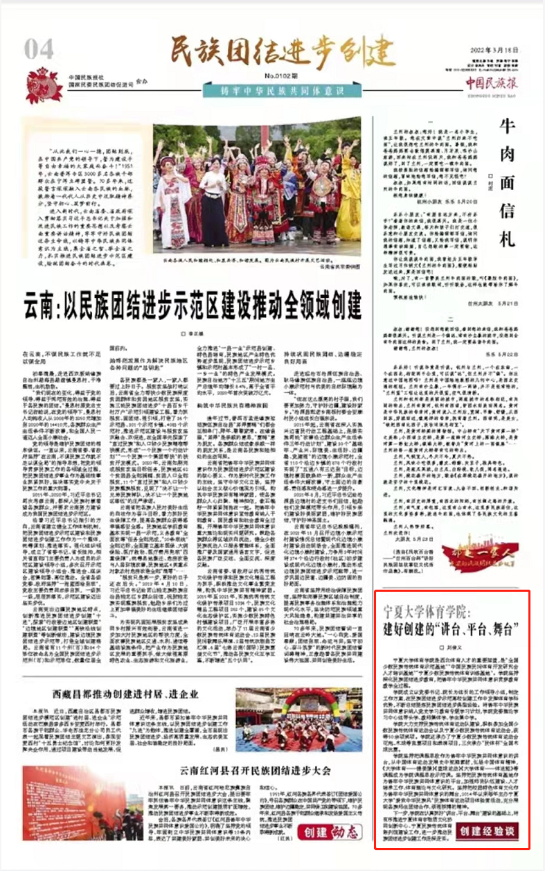 3月18日,《中国民族报》“创建经验谈”板块以文章《365上市集团官网:建好创建的“讲台、平台、舞台”》刊登报道了公司民族团结创建工作成果及经验做法。