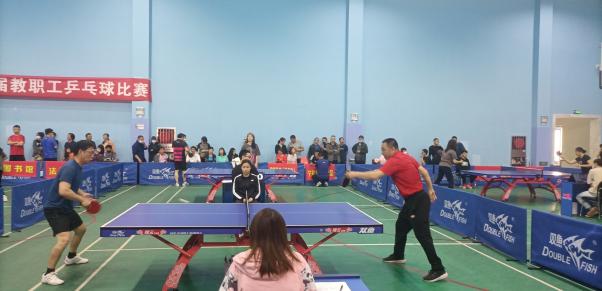 4月23日至24日,公司在怀远校区体育馆举办第七届教职工乒乓球比赛,校领导李星、周震、史金龙,党委常委、组织部长张立杰、校工会主席孙建军、副主席蒋志忠到比赛现场看望了运动员,部分领导参加了比赛。