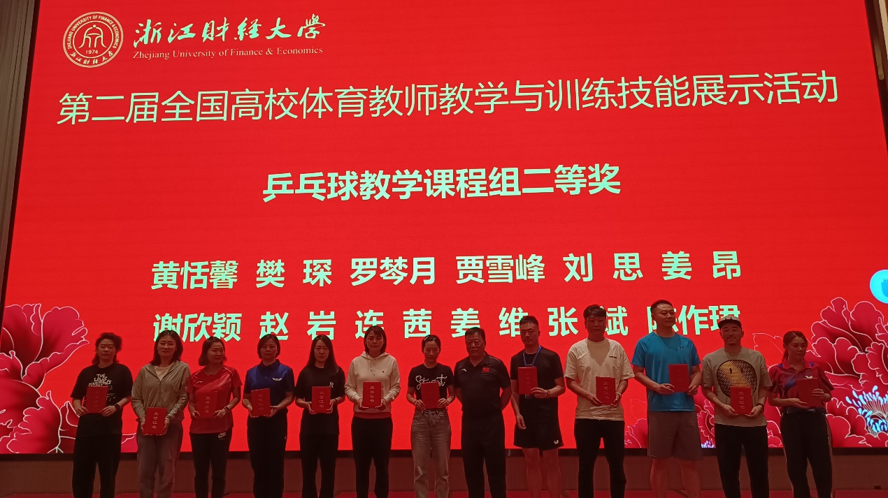 5月27日,由全国高等公司体育教学指导委员会主办,浙江财经大学承办的第二届全国高校体育教师教学与训练技能展示活动在浙江财经大学(下沙校区)顺利闭幕。本次比赛共有来自全国二十八个省市自治区、一百四十六所高校的近200名体育教师参加。比赛设置了篮球、乒乓球、游泳三个项目,分网络评审与现场测试两环节,其中网络评审项目为教学(指导)设计与教学(指导)实践,现场测试项目为体能与专项技能。公司选派的樊琛、刘攀两位教师分获乒乓球项目课程教学组二等奖和篮球项目课程教学组三等奖。