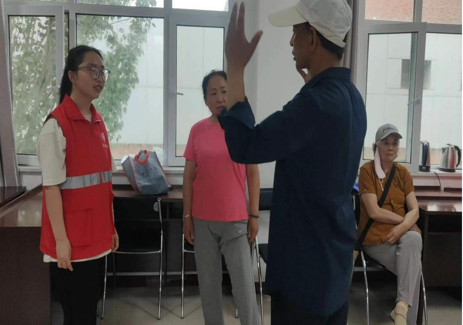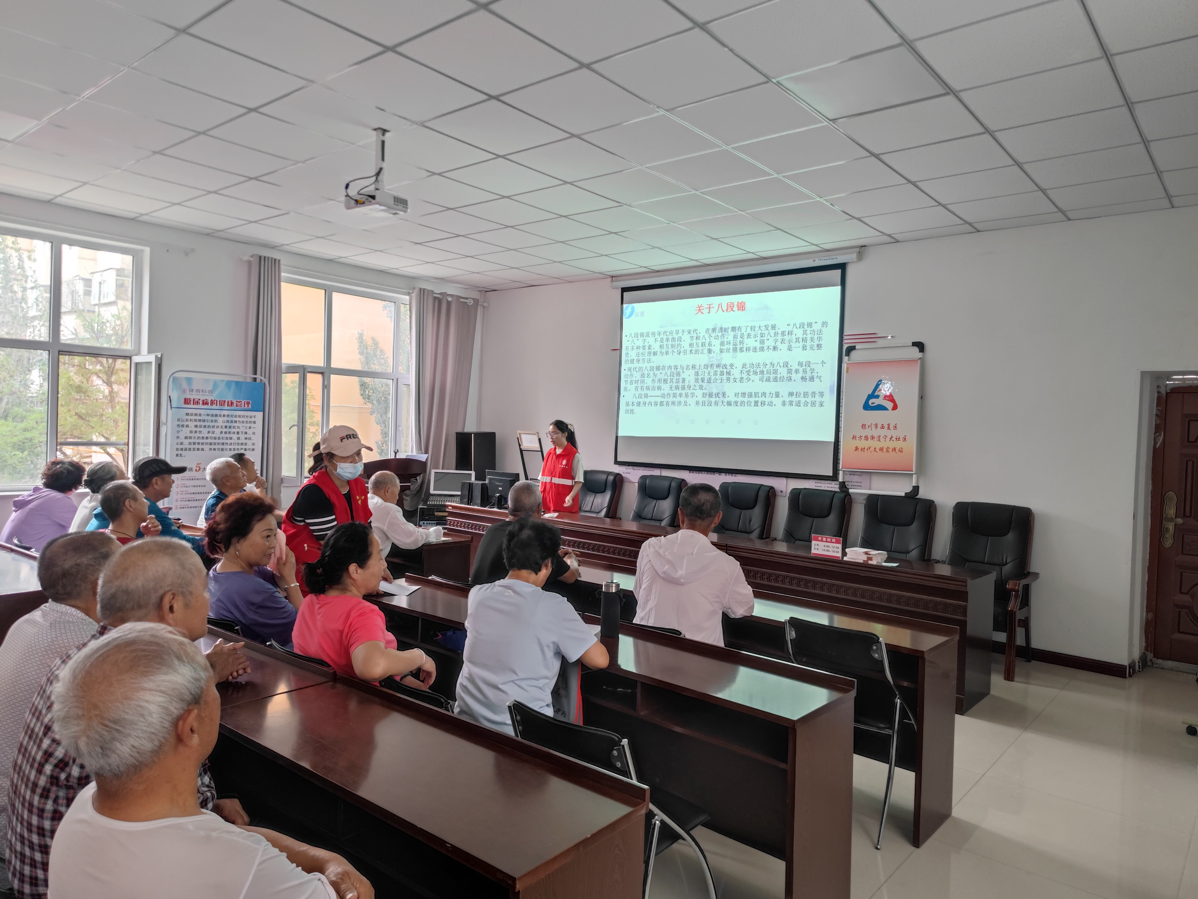 活动的开始环节,公司民族与传统体育专业的王嫘同学为宁大社区的老年人讲解了八段锦的起源和功效,让老年人对八段锦有了更加深刻地了解。