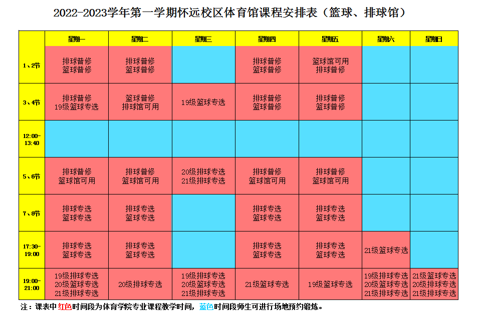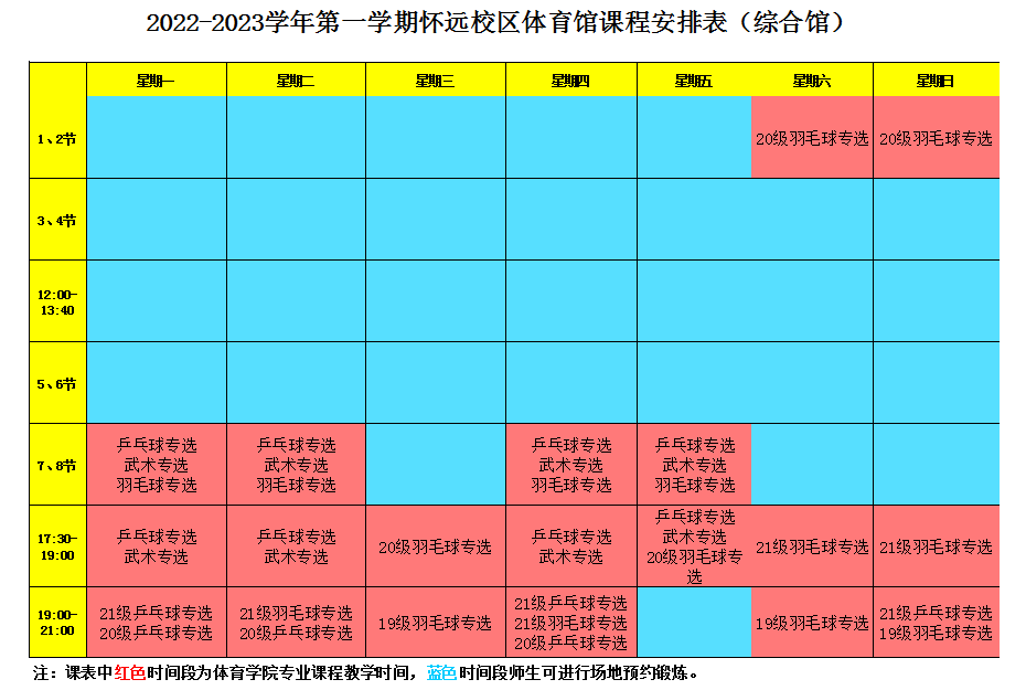 怀远校区室内体育馆将于2022年10月30日对全校师生开放,开放时段如下:
