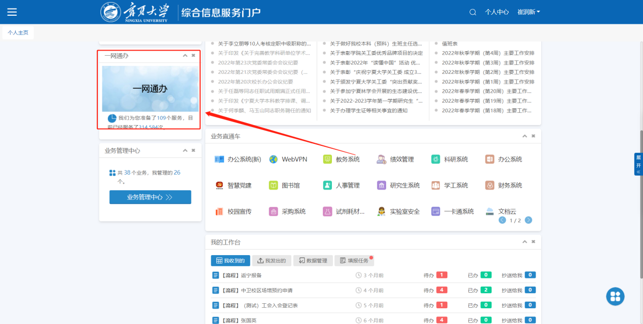 1.登录公司的信息门户:eip.nxu.edu.cn。
