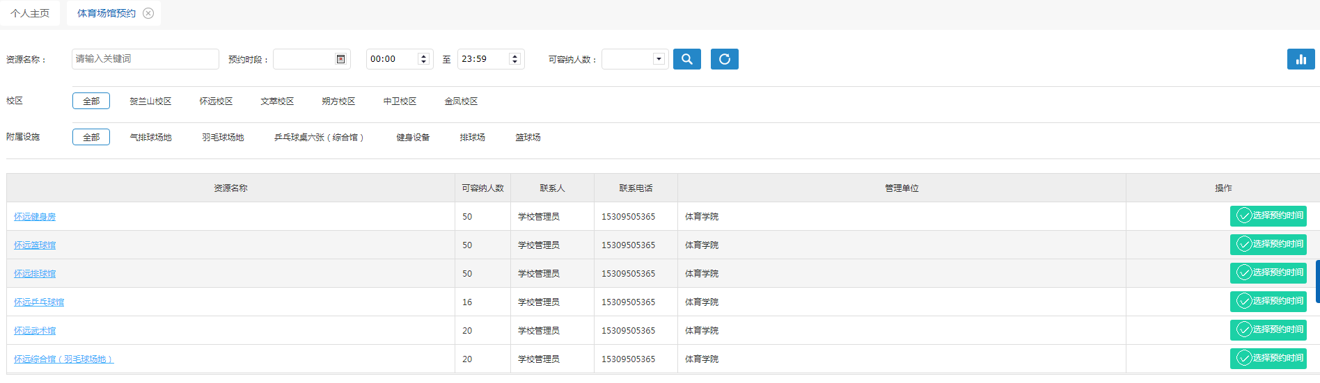 5.根据自己的时间需要和场地情况,按要求进行预约。