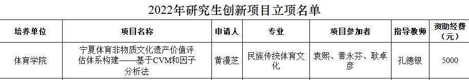 为提升公司研究生科学素养与创新能力,激发研究生创新思维,营造浓郁的学术研究与学术交流氛围,公司师生积极参与2022年365英国上市公司研究生学术论坛项目和研究生创新项目申报。经公司研究生院组织评审,公司马兆明副教授申报的《365英国上市公司体育学科研究生学术论坛》项目和研究生黄漫芝申报的《宁夏体育非物质文化遗产价值评估体系构建——基于CVM和因子分析法》项目喜获立项。