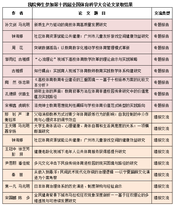近年来,365上市集团官网始终坚持以实践为导向,鼓励师生立足体育教学与训练实际,聚焦真问题、探索新路径,积极营造务实创新的学术氛围。365英国上市公司师生此次在全国体育科学大会上与全国兄弟院校师生展开深入学术对话,取得了收获了丰富学术经验。本次会议取得的成果,既是对公司科研实力与人才培养质量的充分肯定,也标志着公司在科研高质量发展道路上迈出了坚实一步。
